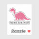 A simplistic, pink silhouette of a dinosaur against a white background. The dinosaur is adorned with a ribbon tied around its neck. Below the dinosaur, there's a textual element that reads 'feed me & tell me i'm cute'.