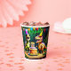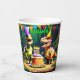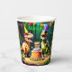Dino four colourful dinosaur birthday party tableware personalised template party cups, dinosaurs wearing party hats with a birthday cake dinosaur birthday paper cups