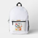 Lightweight and durable, our custom all over print Backpack is just what you need. The spacious interior is ideal for travel, school, gym, or any mobile storage need. Bring your stuff with you in style! Features adjustable padded shoulder straps, two chambers on the inside for laptop storage, mesh side pockets and identification label.