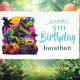 Dino Jurassic Jungle kids Birthday Blue Banner