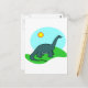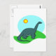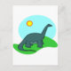 A cute dinosaur standing on a green patch of grass with the sun shining behind him is a cute design for boys who love dinosaurs.