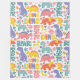 A lively and vibrant pattern featuring various adorable dinosaurs, hatching eggs, footprints, and playful "Dino" and "Roar!" text. The colourful design showcases different dinosaur species in soft pastels and bold hues, bringing a cheerful, prehistoric energy.