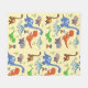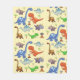 Dino world fleece blanket design includes cute dinosaurs, volcanos and palm trees.