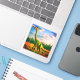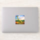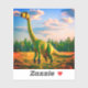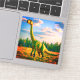 This sticker has a dinosaur pictured on it.