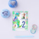 For the boy who’s turning two and who loves dinosaurs. This Roaring T-Rex invites Dino fans to a fun 2nd birthday party. Personalise this colourful watercolor splash blue and green second birthday invitation with a photo of the birthday boy, the number of the birthday and the party details and you are all set for a fun packed dinosaur themed dino birthday. All dinosaur species are welcome. Unique beautiful original artwork by artist Catherine Sweetman