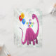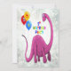 5th birthday party invitation for a child who loves dinosaurs. A dinosaur smiling at three balloons tied to his tail. Have a roaring good party with an invitation that all the children will adore. Add your party details to personalise a very special birthday party invite.