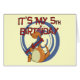 A cute dinosaur theme 5th birthday design on Dinosaur 5th Birthday T-shirts, birthday buttons, mugs, cards, stickers, bags, and other dinosaur 5th birthday apparel and gifts that kids who love dinos are sure to love wearing on their special day!