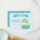 A baby shower thank you with a cute little green dinosaur with light yellow spikes hatching from an egg. On the reverse is a dots pattern using the same pattern from the egg. Personalise with your baby shower thank you message in the space provided.