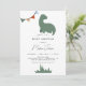 Dinosaur baby shower invitation in a minimalist style with a cute green dinosaur and pattern on back. You can personalise this invitation with your own details under the "Personalise this template" section.