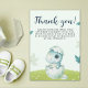 Say thank you in the sweetest way with this dinosaur baby shower thank you card. Featuring an adorable baby dinosaur illustration and soft watercolor style, it’s perfect for expressing gratitude after your little boy’s celebration.