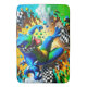 This bath mat has a dinosaur on it.