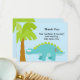 Finish your party off right with this adorable, birthday boy thank you. It is set on a light blue background made with a palm tree off to the right. Theres a blue green dinosaur in front of the tree. Check out our many other products in this line : invitations, postage, stickers, and many more.© Jessica Weible Illustrations