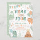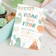 Dinosaur Birthday Invitation Four. Cute Baby Dino 4th Invite. Printable Pastel Greenery Roar Into Four Boy Modern Digital Kids Party D2