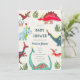 A cute dinosaur dino baby shower invitation featuring hand painted dinosaurs in a pre historic jungle of palm trees and leaves. For the best baby shower for a boy! Original artwork by Caroline Bonne Müller.