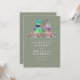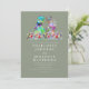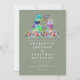 The design includes elegant modern white script typography that’s easy to personalize simply add the bride and groom’s names, wedding date, and all your special details. Set against a stylish sage green background, this invitation blends whimsical dinosaur art with chic modern style.
