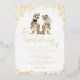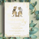Fun Dinosaur Wedding Invitation white and Gold Foil & Eucalyptus jungle foliage Design