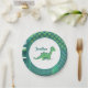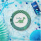 Dinosaur birthday cake paper plate. Gren/blue dino with name plate.