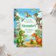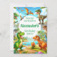 Cute and colourful dinosaur birthday party invitation is perfect for a little one's celebration. The front side contains the invitation and your special one's name. The back includes all of the pertinent details including date, time, location and rsvp information. Text is completely customisable. This invitation features pterdactyl, brontosaurus, t-rex and triceratops. This design features generative content.