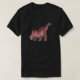 I give wanted to give this a 4 instead of a 5 because these Basic DARK T0shirts run unexpectedly SLIM or Narrow. Which is great if you do not have a potbelly, but I have a paunch. It isn't the shirt's fault that I've got a beer belly. The design and shirt itself is a quality cotton shirt. The color is more of a deep purple, but still a very pretty color. The Basic DARK T-shirts run a bit SLIMMER than the Basic Ts. The neck is a fraction narrower (or seems to be narrower) also. I'm a paunchy middle-aged woman and my neck is 12 inches (31cm) thick and the neckline fell about the same as in the photo of the man, and I had the desire to tug it a bit. So if you're a thick necked man or like loose shirts, be aware these are slimmer shirts. Once I get rid of my lockdown paunch it'll look great. The shirt washed well in cold water with no apparent bleeding. We don't have a dryer, so it hung dry. Did not shrink. Love the colors and the design. The design looks smaller on my shirt than it does on the model on-line. But still, it looks good on the shirt. The printing looks as it does on the model, just the size seems fractionally smaller. Washed garment in cold water, hung dry and design appeared unaffected.