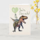 "Dino-mite" valentine theme featuring illustration of a dinosaur with green heart shaped balloon. Personalise the text inside.
