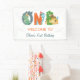 Modern First Birthday Party Dinosaur Welcome banner. Design features number one typography script and dinosaur icons. Personalise with a name.
