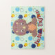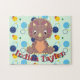 Cute Dinosaur jigsaw puzzle for kids with a circles pattern background. Personalise with his name to make this a fun gift for any child!