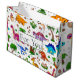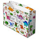 A sweet happy Birthday bag personalised gift bag for a person who loves dinosaurs. Click the "Customise it!" button to change the text size, text colour, font style and more!