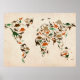 A map of the world made with dinosaur silhouettes on a vintage background.