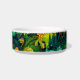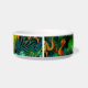 This is a heavy, durable bowl decorated with Tibbies of many colors, the perfect size for hungry/thirsty Tibs. The design is interesting and printing clear.