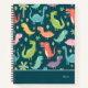 Add a custom Jurassic touch to the school supplies of your little kid with this monogrammed dinosaur notebook. Notebook has a pattern of colourful dinosaurs on a dark blue background and your little one's first name and monogram in the bottom right corner.