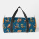 A dinosaur-pattern duffel bag features a whimsical and adventurous design, making it a standout accessory for anyone with a love for prehistoric creatures. The bag's exterior is decorated with a fun, vibrant pattern showcasing a variety of baby dinosaurs.