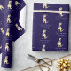 Make your birthday gifts roar with Jurassic fun! This personalised kids name happy birthday dinosaur T-Rex wrapping paper features a mischievous Velociraptor and modern black typography on a navy blue modern background, a unique birthday gift wrap design. Perfect for kids, boys, and dinosaur lovers, this quirky Tyrannosaurus rex gift wrap adds Jurassic humour to every present.