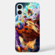 This phone case has a dinosaur pictured on it.