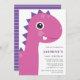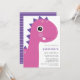 Get ready to roar with excitement at the cutest dinosaur-themed party ever! This pink dinosaur birthday party invitation is perfect for all the girly girls out there. Featuring an adorable pink dinosaur on a white background, this invitation will surely capture everyone's attention. And that's not all! Flip it over and reveal a purple card with pink stripes, adding an extra touch of charm. It's time to invite your friends and make this birthday celebration unforgettable!