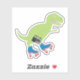 A cute illustration of a green Tyrannosaurus Rex dinosaur roller skating and holding a radio. Ideal birthday gift, nursery decor, kids room art, home decor, back to school or any other special occasion.