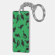 Dinosaur Silhouettes on Green Background Pattern Key Ring