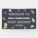 Personalise this awesome Spaceship Dinosaur Star Planet Galaxy Baby Shower backdrop banner with your details easily and quickly. All texts are editable!. For more advanced customisation of this design, simply select the 'Customise It / Personalise this template' button above! Matching items available in collection!