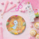 It's time to celebrate Little Dinosaur [Name]'s fourth birthday in style! Our watercolor design showcases the excitement of a dino adventure with the words "Chomp, Stomp, Roar" and an endearing baby dinosaur clutching the number 4. Make it extra special by adding the birthday dino's name to the plate - a keepsake that'll be treasured for years to come. The plate is part of a set to be found in the shop.