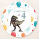 Dinosaur T Rex Birthday Grey Round Paper Coaster