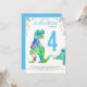 Dinosaur T. rex jungle 4th Birthday Party blue Invitation