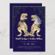Funny Dinosaur navy blue and White Jurassic Wedding Invitation T-Rex Bride and Groom | Modern Jungle Theme with QR Code RSVP