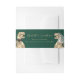 Funny Dinosaur Wedding invitation Belly Band. Custom elegant typography script T-Rex Bride & Groom on a rich dark green background.