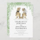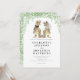 Delight your guests with this funny dinosaur themed wedding invitation with fun T-Rex bride and groom. Easy to customise with the bride and grooms names, the wedding date and all the wedding venue details in modern typography script. Fun T-Rex bride and groom illustrations in brown hues with jungle foliage in green hues. Unique original dino artwork by artist Catherine Sweetman