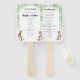 Delight your guests with this funny dinosaur themed wedding day program fan with funny dinosaur bride and groom and watercolor eucalyptus foliage. Easy to customise with the bride and grooms names, the wedding date and all the wedding day ceremony details in modern typography script. Fun T-Rex dino bride and groom dino illustrations in brown hues with watercolor botanical greenery in green hues. Unique original dino artwork by artist Catherine Sweetman