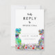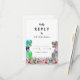 Bring fun and joy to your wedding day preparations with this colourful Dinosaur themed wedding RSVP reply enclosure card with psychedelic T-Rex bride and groom in a colourful prehistoric wildflower meadow. Modern whimsical typography calligraphy with easy to personalise templates. Unique Tyrannosaurus Rex bride and groom with watercolor summer floral art original artwork by artist Catherine Sweetman Ideal for the wedding day reception or rehearsal dinner. Matching wedding suite includes everything you will need on your fun wedding journey