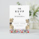 Bring fun and joy to your wedding day preparations with this Dinosaur themed wedding RSVP enclosure card with T-Rex bride and groom in a colourful prehistoric wildflower meadow. Modern whimsical typography calligraphy with easy to personalise templates. Unique Tyrannosaurus Rex bride and groom with watercolor summer floral art original artwork by artist Catherine Sweetman Ideal for the wedding day reception or rehearsal dinner. Matching wedding suite includes everything you will need on your fun wedding journey