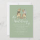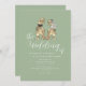 The sage green background paired with elegant script fonts and clean modern typography creates a stylish yet playful vibe that works beautifully for both quirky and chic celebrations.