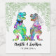 Delight your guests with these funny colourful dinosaur bride and groom dinosaur themed wedding custom labels. Fun colourful psychedelic Tyrannosaurus dino bride and groom in pink blue purple green yellow hues and green jungle foliage with easy to personalise bride and grooms names and the wedding date in modern whimsical typography script. Unique original dino artwork by artist Catherine Sweetman