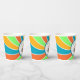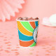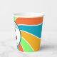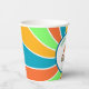 Adorable Personalised Boy's Birthday Party paper cups. Cute dinosaur theme in blue, orange and green. Cute cartoon dinosaurs holding balloons and birthday cake. Add name and age in the personalise area.
