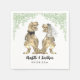 Delight your guests with these funny dinosaur themed wedding custom napkins with fun dinosaur bride and groom and watercolor eucalyptus foliage. Easy to customise with the bride and grooms names, the wedding date in modern typography script. Fun T-Rex bride and groom illustrations in brown hues with watercolor botanical greenery in green hues. Unique original dino artwork by artist Catherine Sweetman